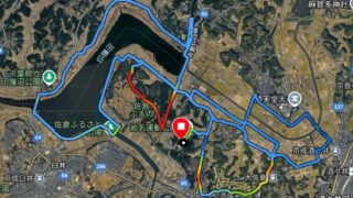 下図は、実際に走った軌跡と標高のマップです。今回はGPSデータ(GPXファイル)を「ヤマレコ」に読み込んで作成しました。山の記録サイトですが、GPXファイルがあればどんなコースでも読み込んで表示してくれます。