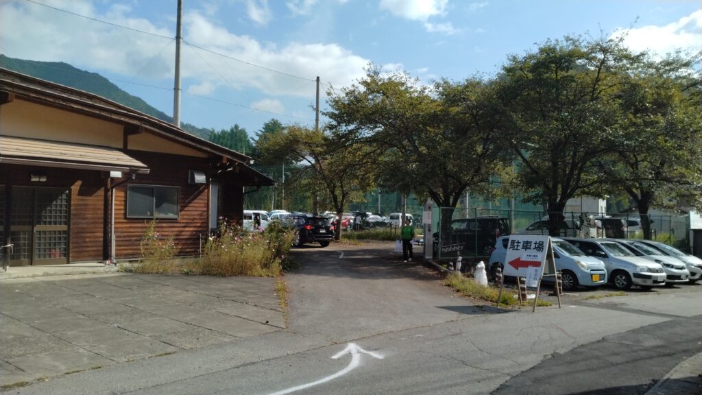 今回、道の駅こすげの駐車場ではなく、手前に設けられていた臨時駐車場へ誘導されました。料金は700円で、入り口で現金払いでした。トイレや水場もあって便利です。ただ、水資源は貴重なので、使用は控えめにした方が良さそうです。