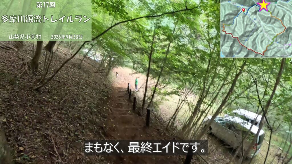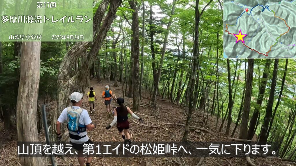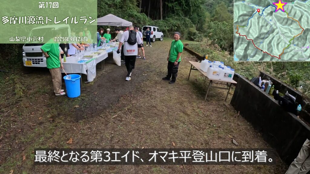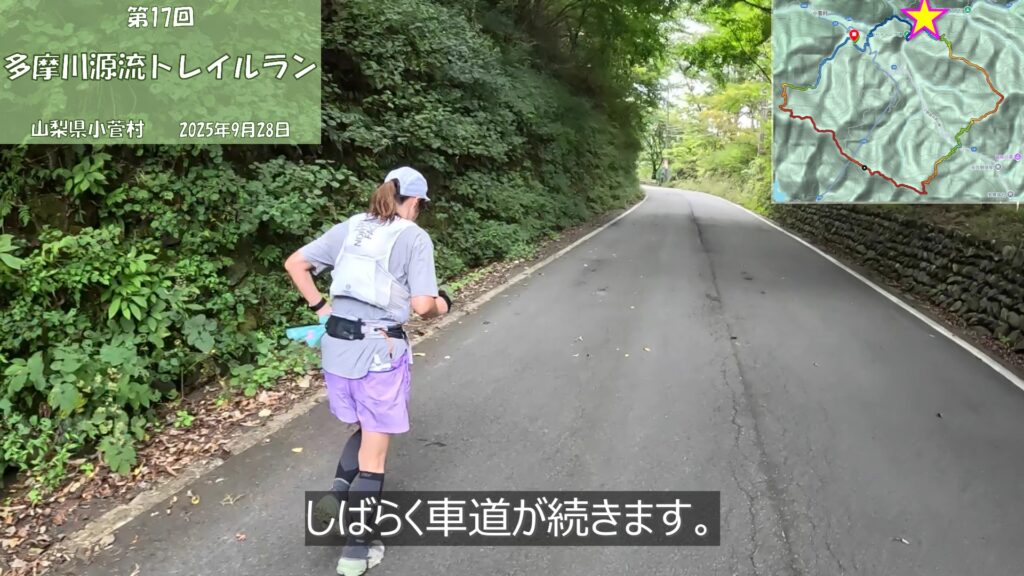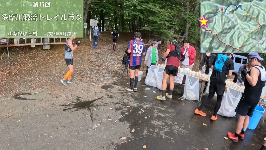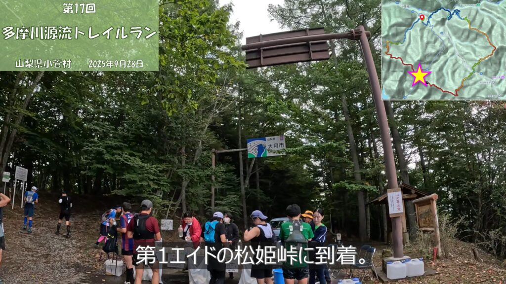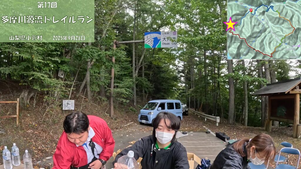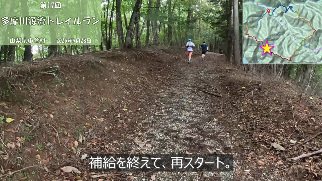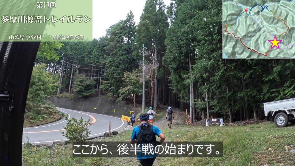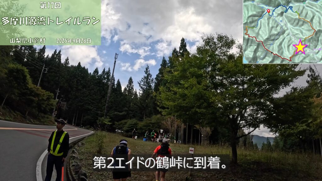 続いて、第1エイドの松姫峠を出て、第2エイドの鶴峠までの様子です。この間は距離的にも短く、割とすぐに到着した感じです。鶴峠でコース全体のおよそ中間地点となります。