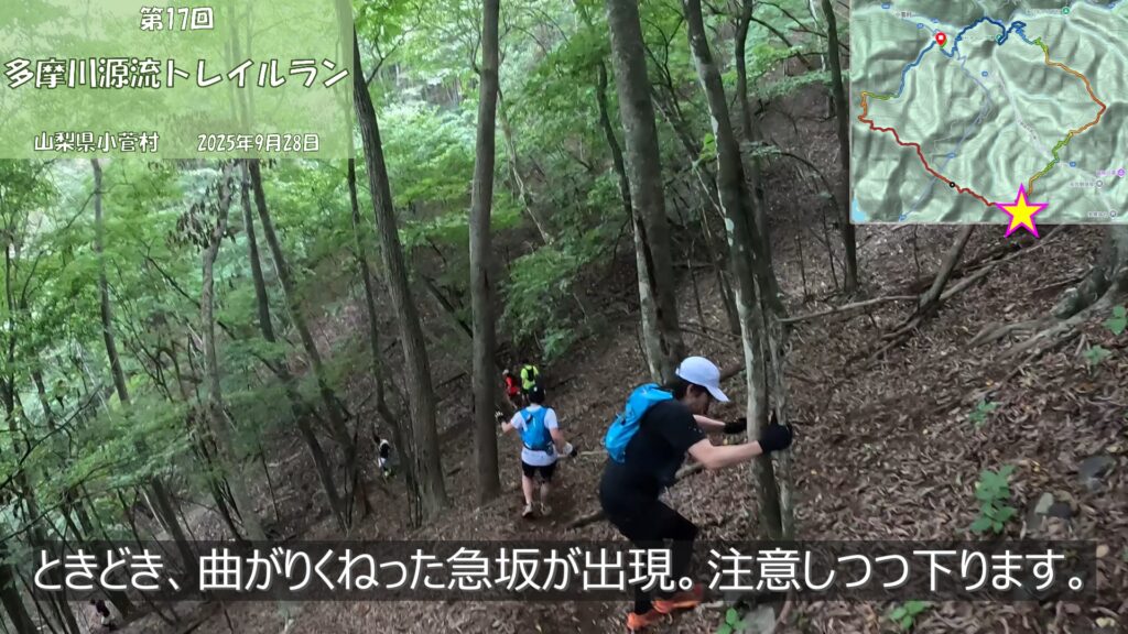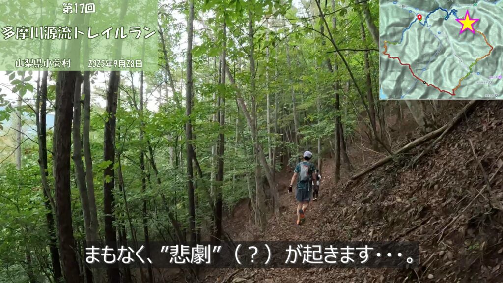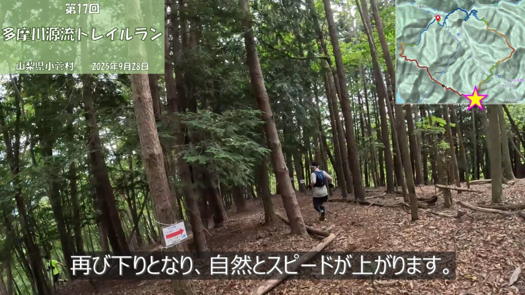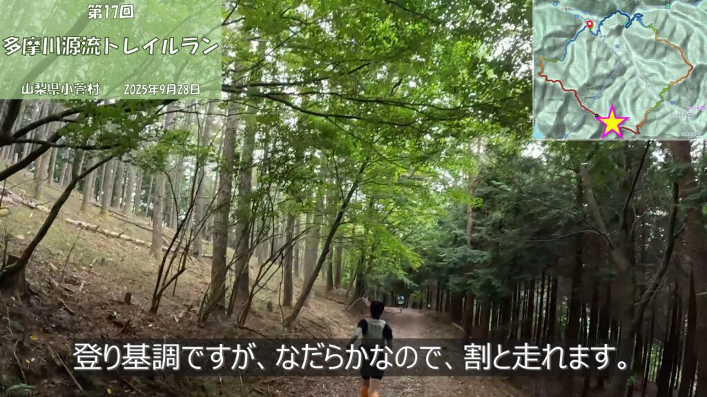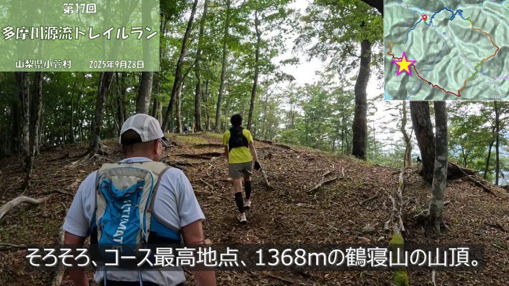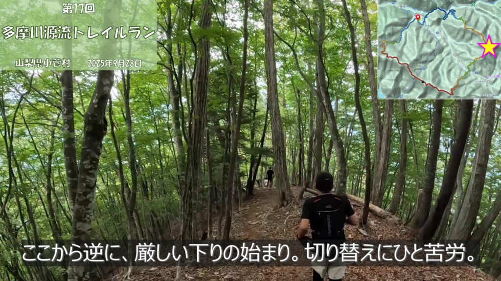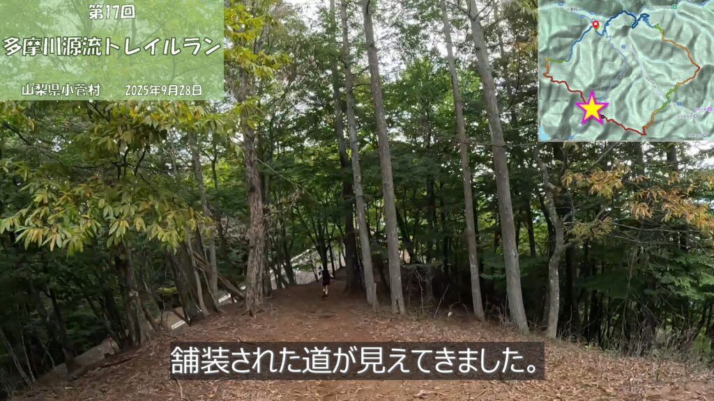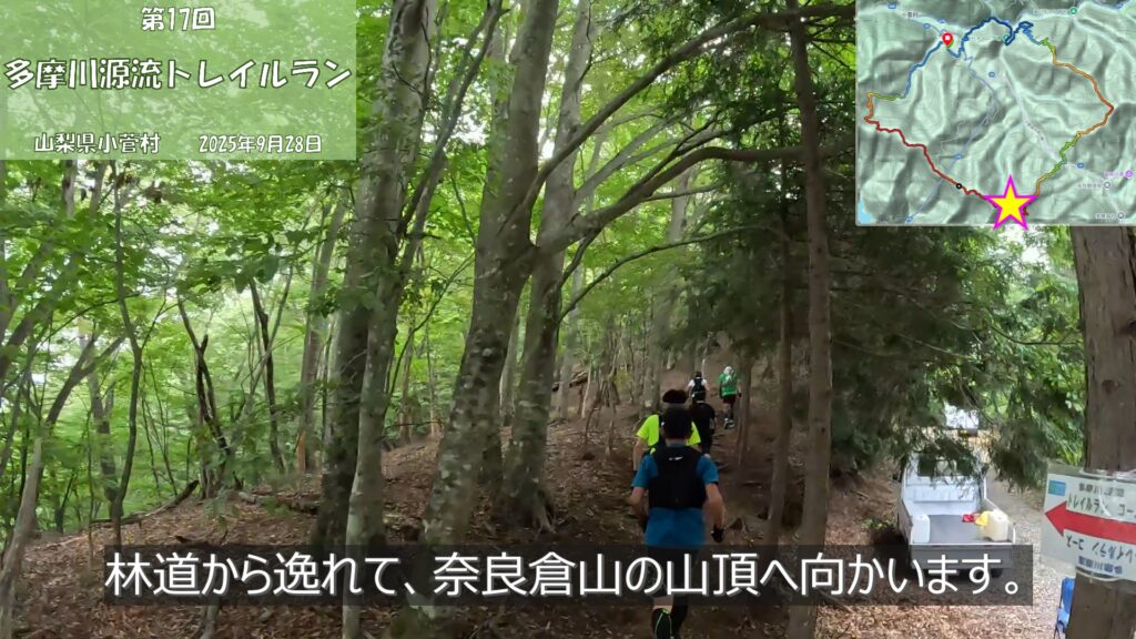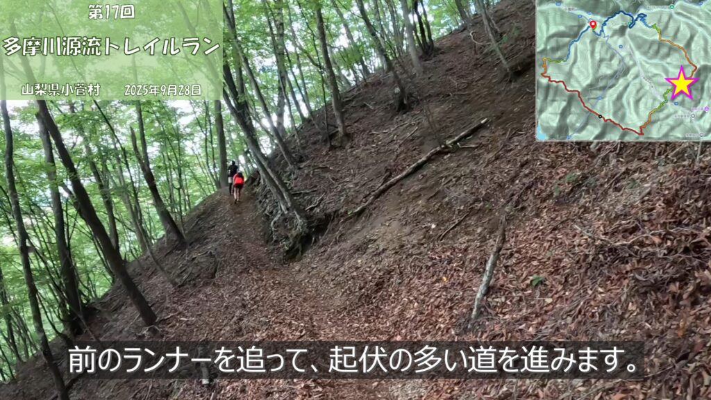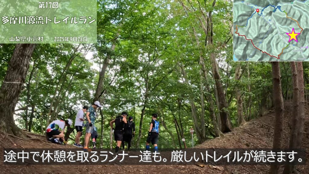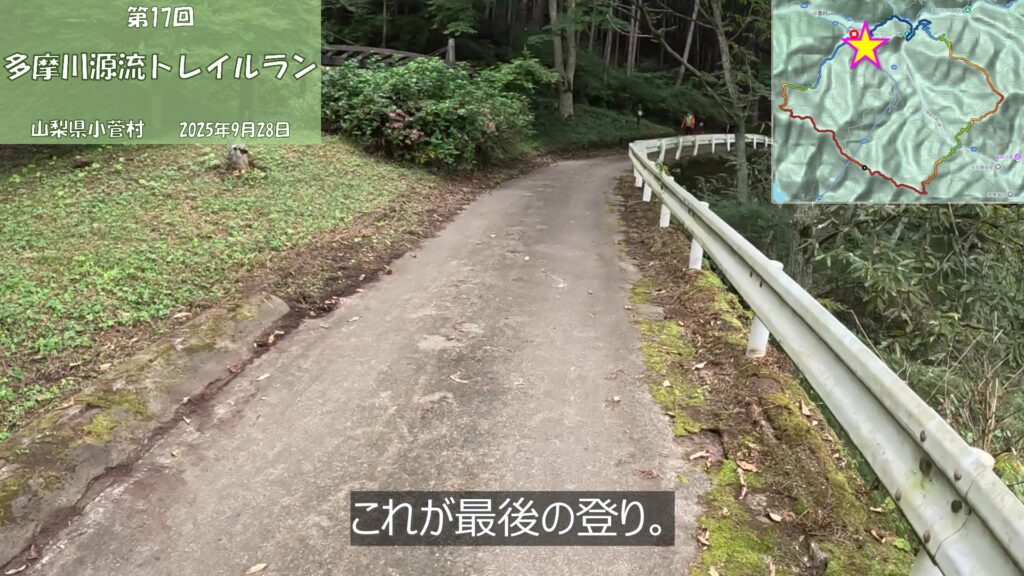 続いて、第1エイドの松姫峠を出て、第2エイドの鶴峠までの様子です。この間は距離的にも短く、割とすぐに到着した感じです。鶴峠でコース全体のおよそ中間地点となります。