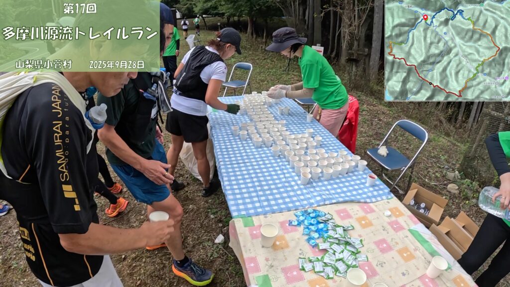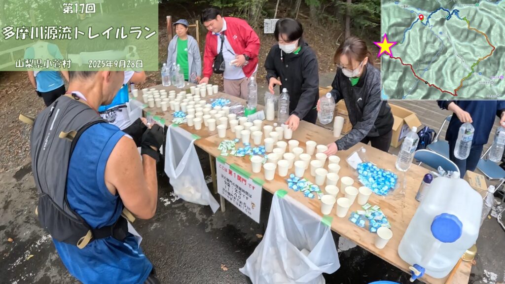 エイドでは、ドリンクや飴が豊富に用意されていました。また、マイボトルやマイカップへの補給も、スタッフのみなさんが親切にしてくれて、とても助かりました。